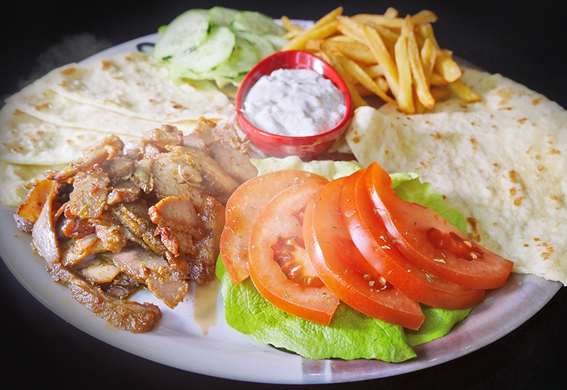 domaće tortilje,taziki,meso,pomfrit,salata